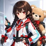 (くまのぬいぐるみを背負い直す)